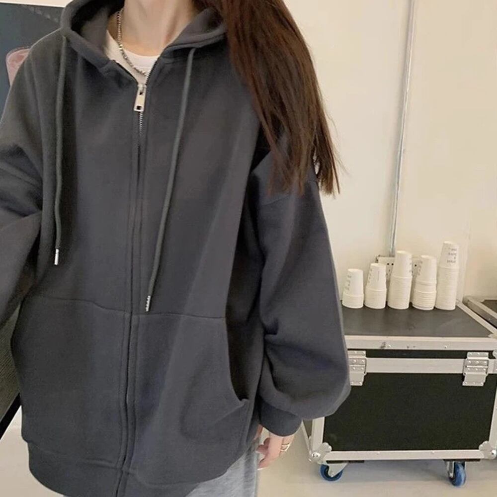 女性用ジッパー付き長袖スウェットシャツ,フード付きスウェットシャツ,コットン,ルーズ,モノクロ,スポーツ,原宿,女性用ジャケット,韓国アウター,y2kファッション パーカー ジャージ y2k T240908200422_02 | HUG-L