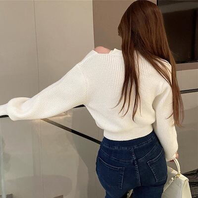 カシミヤタッチ ショート丈 ニットトップスレディース秋冬