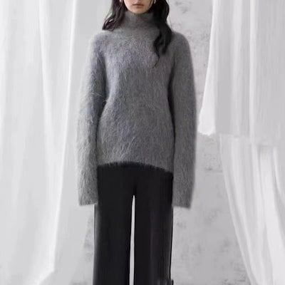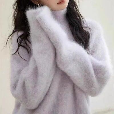 【手触りいい】 高見えデザイン シンプル 無地 プルオーバー ハイネック ニットセーター レディース