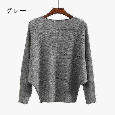 ドルマンニットセーター オシャレ 秋冬 レディース ニット 体型カバー ドルマン 長袖 ショート丈 冬物 ニットトップス ボートネック 無地 トップス 上着 アウター ゆったり カジュアル 抜け感 着 | HUG-L
