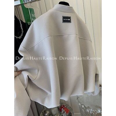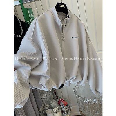 アウター 韓国ファッション ゆったり 感 ワッフルチェック ジャケット ファスナー スウェット カジュアル ショート トップス レディース トップス 野球服