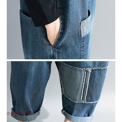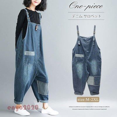 サロペット デニム レディース オールインワン デニムパンツ 無地 サスペンダー ブルー オーバーオール ダメージ ゆったり 大きいサイズ 体型カバー