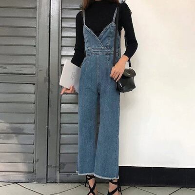 大人カジュアルな着こなしが叶える1本!デニムオールインワン レディース デニム ワイドパンツ オール