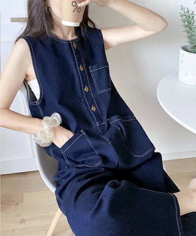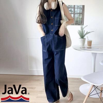 Classical Elfjavaジャバ 別注 パンツ サロペット レディース 前後 2way 配色 ステッチ デニム ワイド テーパード アンティーク ボタン ワークディティール レイヤード コーデ ロングシーズン 大き | HUG-L