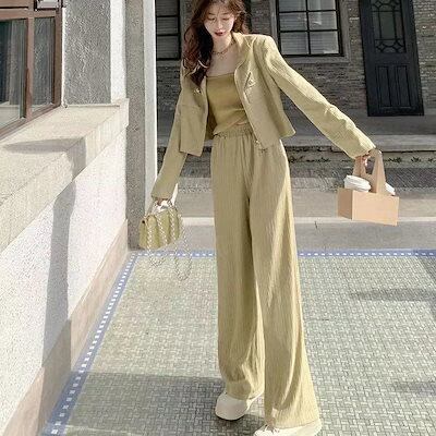 アウター+ズボン 2点セットレディース 春秋 カジュアル スウェット ワイドパンツ 通勤 韓国ファッション セットアップ