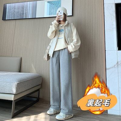 厚手 裏起毛 ワイドパンツ スラックスパンツ ロイワイドパンツ タイプ ストレートパンツ レッグパンツ レディース秋冬 ハイウエススキニーパンツ コーデュロイパンツ 脚長効果! ひんやりボトムス | HUG-L
