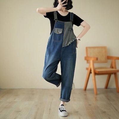 ニムサロペット レディース 春秋 大きめ ゆったり ワイドパンツ 着痩せ オールインワンパンツ