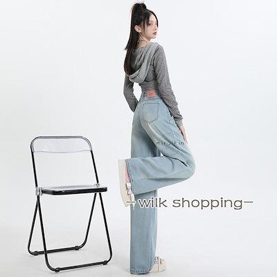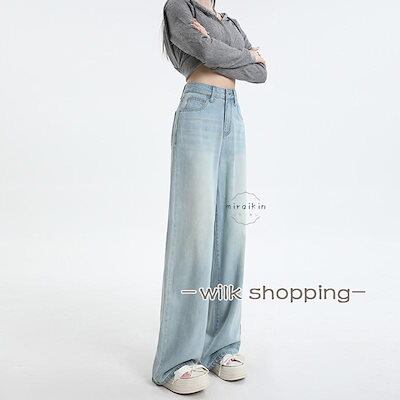 ハイウエスト ワイドパンツ デニム ストレートパンツ レディース ジーンズ デニムパンツ 春 春夏 夏 美脚 ロングパンツ ボトムス ズボン 長ズボン ライトブルー