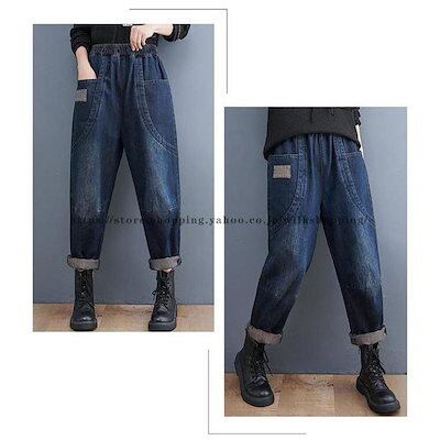 デニムパンツ レディース 裏起毛 暖かい ワイドパンツ おしゃれ ゆったり 太め 大 秋冬 ストレート ボトムス ジーンズ ジーパン
