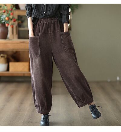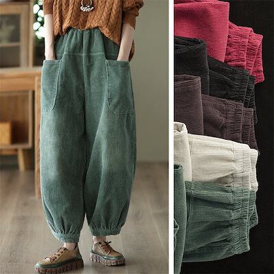 バルーンパンツ コクーンパンツ レディース 春 パンツ コーデュロイ ワイドパンツ ボトムス チノパン 大きいサイズ バギー 厚手 防寒 カジュアル ゆったり 森ガール 体型カバー おしゃれ きれいめ | HUG-L