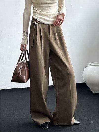 タックワイドパンツ レディース ボトムス パンツ ベルト付き ハイウエスト ワイドパンツ 春夏 ロング ゆったり ズボン カジュアル 通勤 仕事 オフィス 事務所 OL 体型カバー 楽ちん ファッショ | HUG-L