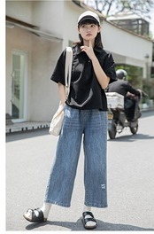 デニムパンツ レディース ワイドパンツ デニム ストレートパンツ レディース 9分丈 綿混 ジーパン ゆったり ワイドパンツ 無地 美脚 デニムパンツ 大きいサイズ 柔らか バギー ボトムス チノパン | HUG-L