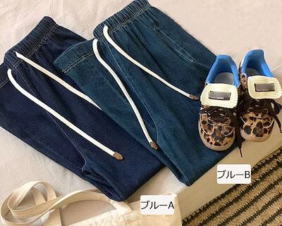 ワイドパンツ デニムパンツ レディース 春秋 パンツ デニム ジーンズ ジーパン ボトムス ゆる リラックスパンツ ゆったり 体型カバー ハイウエスト 大人 ウエストゴム 柔らか 着?せ 美脚 おし | HUG-L