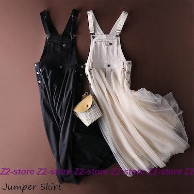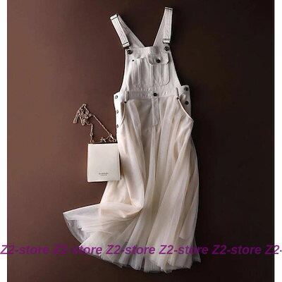 ジャンパースカート ワンピース マキシ レディース デニム ジャンスカ 肩紐 サロペット スカート マキシ ロング オーバーオール スプライス ハイウエスト