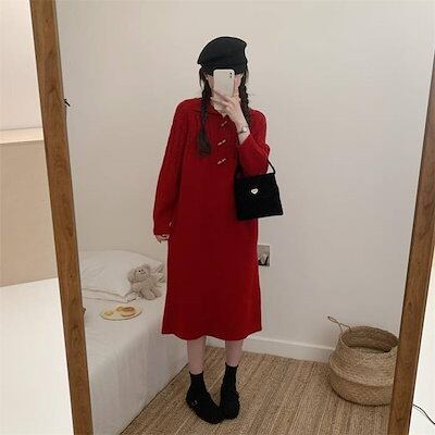 ニット ワンピース レディース 秋 冬 春 リブニット 無地 ニットワンピース ロング 秋冬 長袖 フレアワンピース きれいめ ハイウエスト ニットワンピー aライン 大人 ファッション シンプル カ | HUG-L
