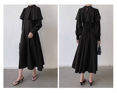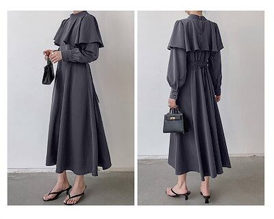 ワンピース レディース 秋 冬 春 無地 切り替え ワンピース ロング 秋冬 長袖 フリル マキシ フレアワンピース きれいめ ハイウエスト マキシワンピー aライン 大人 ファッション シンプル カ | HUG-L