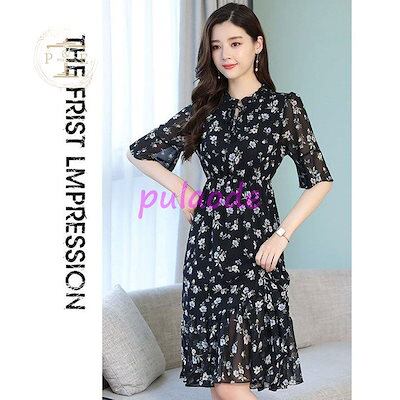 人気SALE ワンピース レディース 40代 きれいめ 夏 膝丈ワンピース フレア 半袖 花柄ワンピース シフォン ハイウエスト ドレス 韓国風 オシャレ 通勤 大人 上品 着痩せ