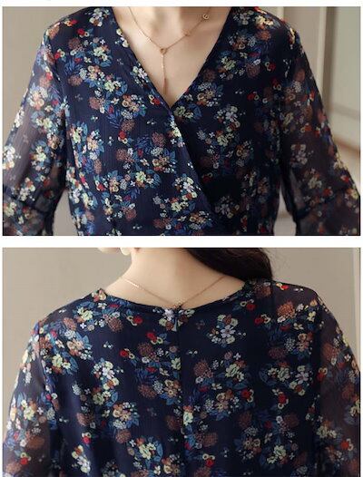 2colors花柄ワンピース 半袖 ワンピース Vネック 花柄 シフォン ハイウエスト ロング丈 マキシ丈スカート 小柄 花柄ワンピース 春 カジュアル パーティー レディース Aラインワンピース ボ | HUG-L