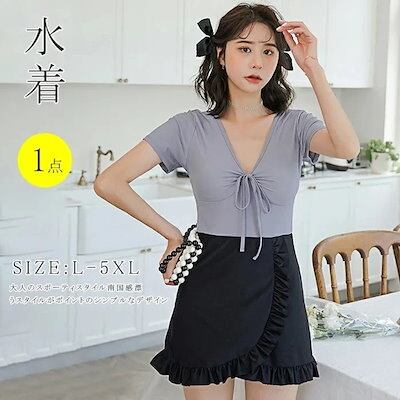 水着 体型カバー レディース ワンピース ワイヤーなし パッド付き おしゃれ 可愛い 女性 無地 お尻 お腹 ハイウエスト 大人 フレア シンプル レディース水着 ワンピース ショートパンツ | HUG-L