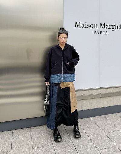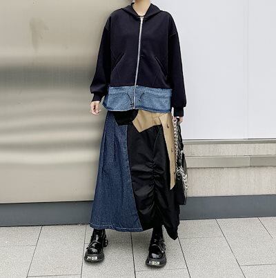 【J.Fashion】 2024秋新品 デニムドッキング ファスナー パーカー スウェット トレーナー レディース ジャケット アウター メガ割