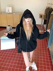 2024 秋トップス パーカー フード付き チャック 長袖 ストライプ ゆったり 細見え 秋 白 黒 おしゃれ かわいい ガーリー キュート 甘め 韓国ファッション レディース お出かけトラック | HUG-L