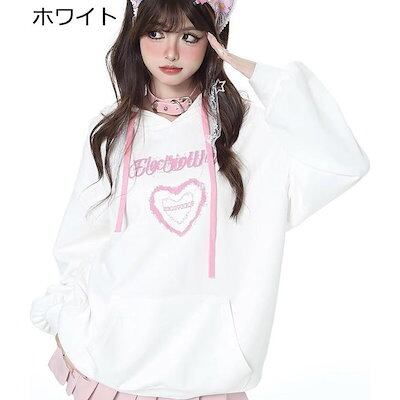 パーカー 可愛い レディース ハート 柄 プリント フード付き 長袖 ゆったり ふんわり 暖かい おしゃれ ストリート系 量産型 韓国 春おすすめ商品