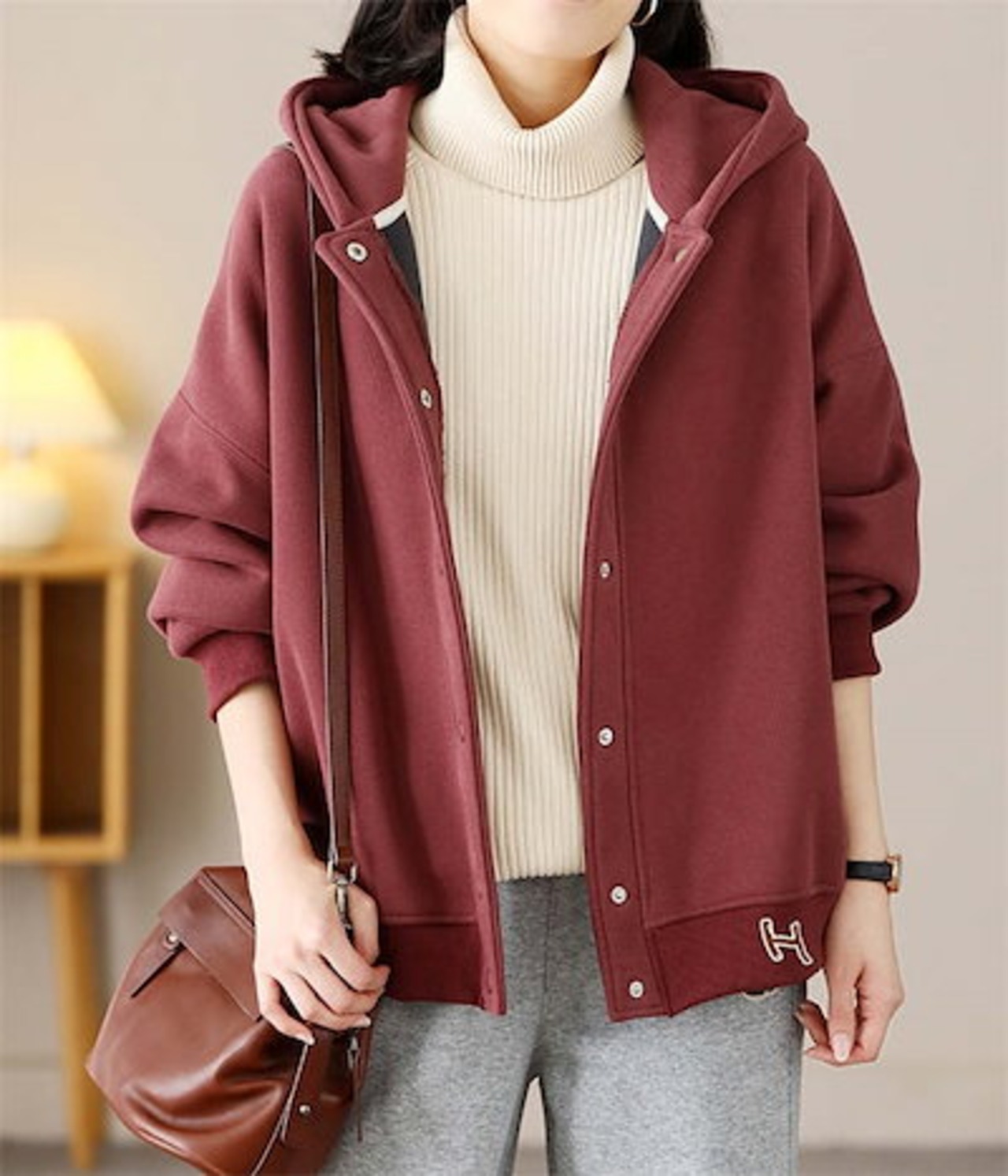 パーカー レディース スウェット トップス 長袖 裏起毛 秋 冬 春 ライトアウター ボタンパーカー ジャケット ブルゾン フード フーディ 羽織り 厚手 裏ボア 防寒 保温 暖か 無地 ゆったり ト | HUG-L