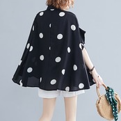 でもブラウス文芸お洒落レディースドット柄シフォンシャツ大きめ UVカット上着着痩せ効果ブラウス