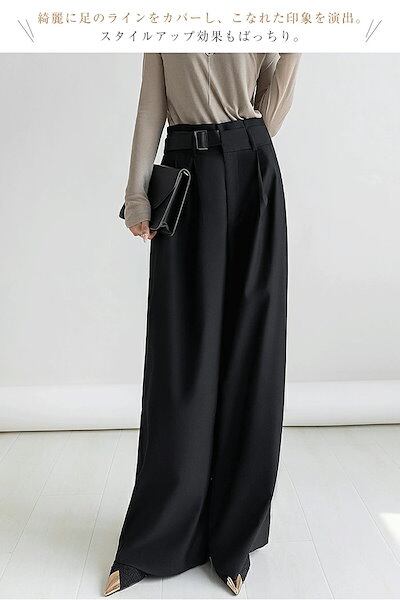 タックワイドパンツ フレアパンツ レディース 春 ワイドパンツ 秋 レディース バギーパンツ イージーパンツ ロングパンツ 春 秋 冬 スラックス ストレート きれいめ 秋冬 ハイウエスト ゆったり | HUG-L