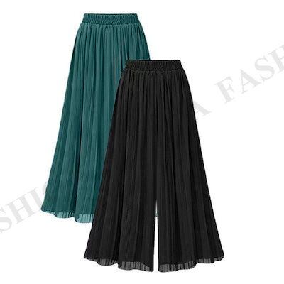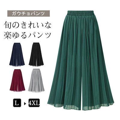 【今季トレンド】ガウチョパンツ 裾プリーツ 九分丈 ワイドパンツ レディース シフォン フレアパンツ スカーチョ ゆったり ウエストゴム 大きいサイズ 体型カバー