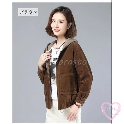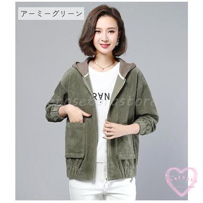 人気沸騰新柄追加 ジップアップジャケット レディース アウター フード付き グリーン ブラウン コーデュロイ シンプル おしゃれ