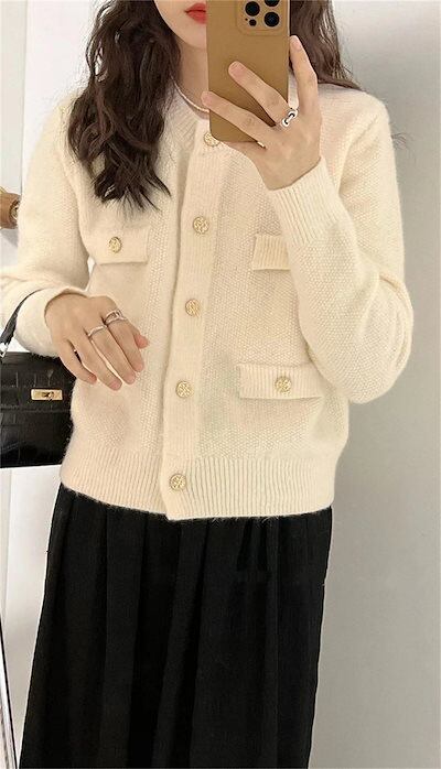 カーディガン レディース 秋冬 アウター パーカー ニット ジャケット 長袖 厚手 ニットカーディガン ニットトップス 長袖セーター セーター トップス ボタン止め 前開き ゆったり ジャケット風 羽 | HUG-L