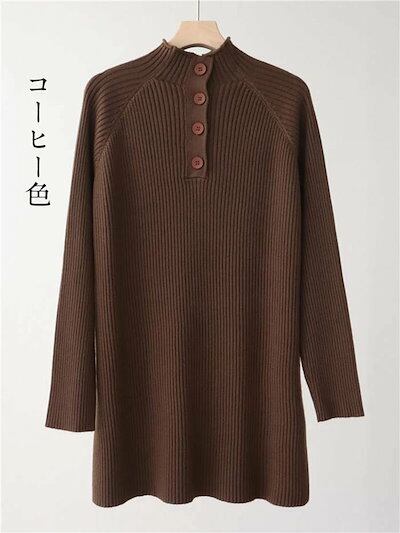 ニット レディース 秋冬 セーター ロング カットソー チュニック ニットセーター ハイネックセーター ニットウェア トップス 長袖 秋 冬 ニットセーター タートルネック アウター プルオーバー ブ | HUG-L