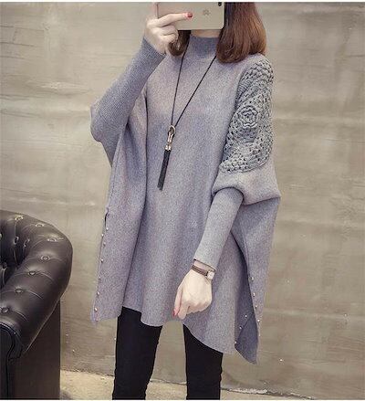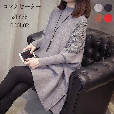 ニット セーター 長袖 ロング丈 ドルマンスリーブ レディース ハイネック 透かし彫り アウター サイドスリット お洒落 ゆったり デザイン 秋冬 コーデ 通勤 送料無料