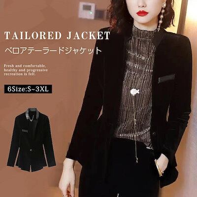 ジャケット ベロアジャケット レディース テーラードジャケット 長袖 ライトアウター コート ベロア 体型カバー フォーマル スーツ 黒 ブラック シンプル ジャケット オフィス 通勤 OL お呼ば | HUG-L
