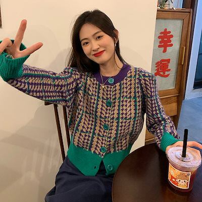 2022新商品 春秋 レディース トップ丈 チェック レトロ 体系カバー トップス アウター カーデ