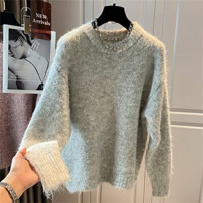 ニットセーター セーター レディース シャギーニット シャギー ニット アウター 長袖 セーター インナー 長袖セーター プルオーバー ニットソー 秋 冬 厚手 秋冬 無地 ふわふわ もこもこ グルー | HUG-L