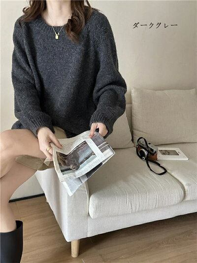 セーター グルーネック レディース ニットセーター 長袖 セーター ニット 無地 ニットソー インナー アウター 秋冬 無地セーター ニットトップス プルオーバー トップス 防寒 暖かい カジュアル風 | HUG-L