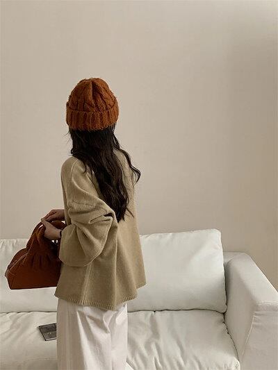 セーター グルーネック レディース ニットセーター ショート丈 長袖 無地 ニット 無地セーター ニットソー インナー アウター 秋冬 ニットトップス プルオーバー トップス ゆったり レイヤード 防 | HUG-L