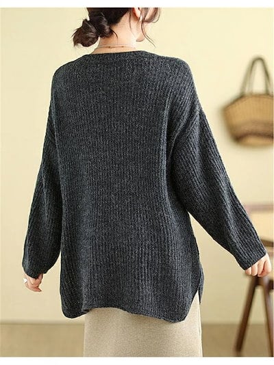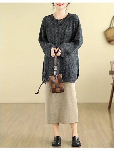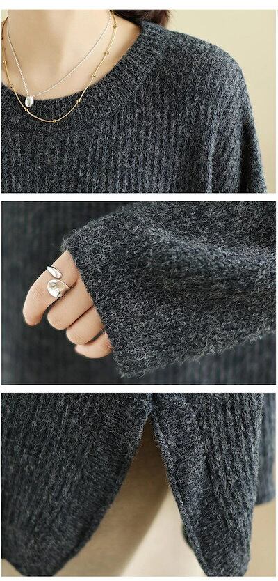 ニットセーター セーター レディース グルーネック 長袖 セーター ニット スリット ニットソー インナー アウター 秋冬 無地 カットソー プルオーバー トップス ゆったり 体型カバー ニットトップ