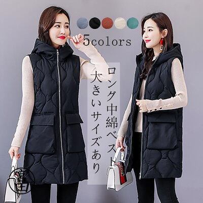 中綿ベスト 前開き レディース ベスト 秋冬 アウター ロングベスト ジレ コート ジャケット キルティング キルティングコート ノースリーブ 羽織 ロングコート