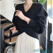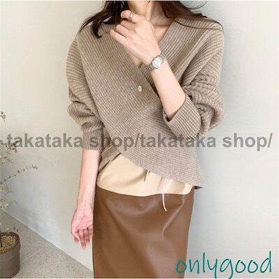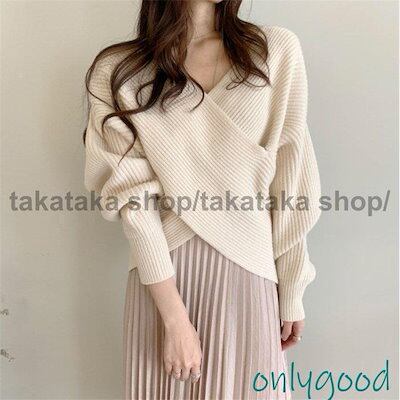 ニットセーター レディース 秋冬 40代 トップス 長袖 不規則 セーター ニットソー vネック 韓国風 ショート丈 ニットトップス ゆったり カジュアル オシャレ
