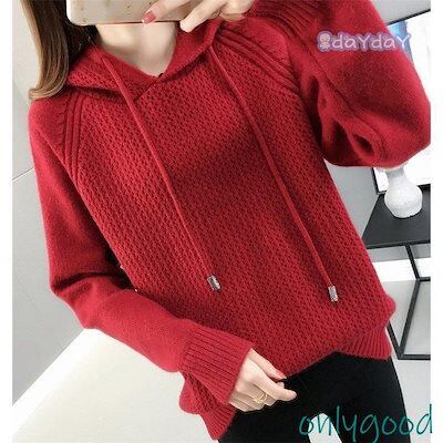 ニットセーター レディース 秋 冬 40代 長袖トップス 無地 セーター カットソー ニットウェア フード付き ゆったり 大きいサイズ 暖かい おしゃれ 大人 着痩せ