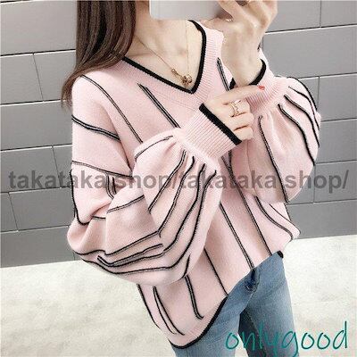 ニットセーター レディース 秋冬40代トップス 長袖 アウターvネックパフスリーブ メリヤス ニットソー ニットセーター ロング丈 メリヤス韓国風 通勤 OL 着痩せ