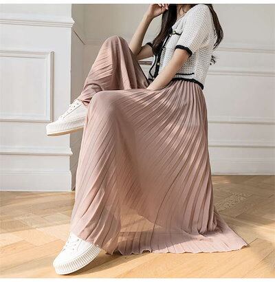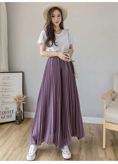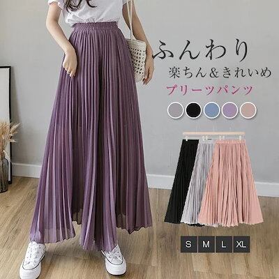 2024新作 プリーツパンツ ワイドパンツ リラックスパンツ 無地 フレアパンツ シフォン ガウチョ スカーチョ プリーツ パンツ レディース きれいめ 可愛い 大きいサイズ 体型カバー おしゃれ | HUG-L