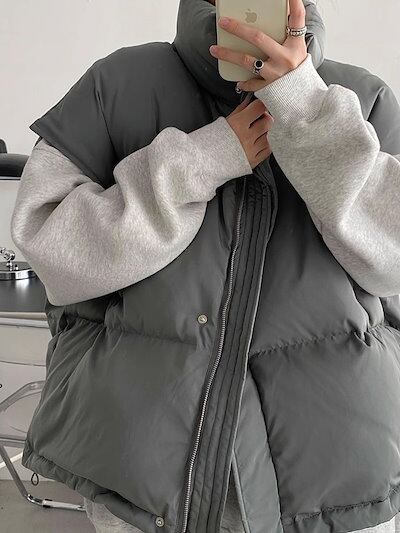 中綿ベスト 厚手 ノースリーブ ポケット 羽織り 防寒 ブラック ダウンベスト レディース トップス ゆったり キルティング 重ね着 ジャケット シンプル 大きいサイズ 秋冬 カジュアル ショート丈 | HUG-L