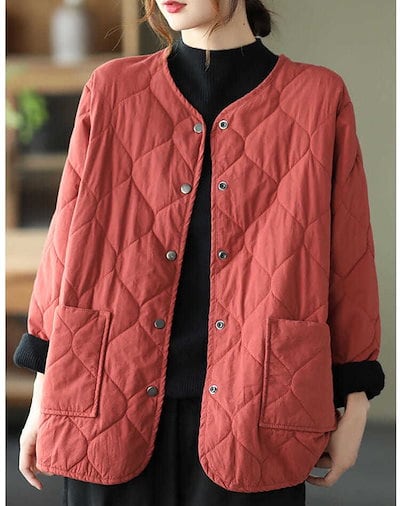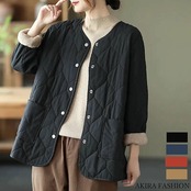 中綿コート 冬 キルトジャケット ノーカラー 大きいサイズ キルティングコート アウター 軽量 暖かい あったか キルティングジャケット カジュアル トップス レディース 中綿ジャケット 防寒 中綿ダ | HUG-L