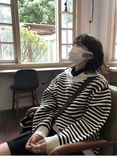 長袖トップス セーター トップス ドロップショルダー ニットセーター レディース ゆったり 厚手 通勤 ニットウェア ニットトップス カットソー パーカー 通学 フード付き プルオーバー 冬 ボーダー | HUG-L