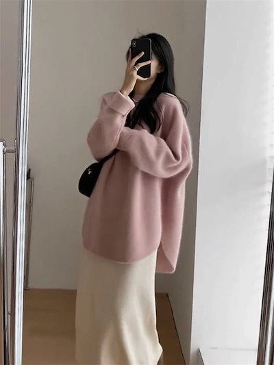 カットソー チュニック丈 レディース ドルマン袖 セーター ニットセーター 体型カバー ニット 秋冬 長袖 可愛い スリット 冬物 ロングニット 暖かい オーバーサイズ 着痩せ ニットチュニック もこ