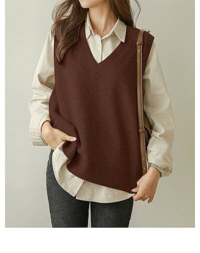 20代 無地 リブニット 可愛い 柔らかい チョッキ セーター レディース 冬 秋 シンプル ニットセーター お洒落 30代 vネック 通学 トップス ニット ベスト ニットベスト プルオーバー ニッ | HUG-L